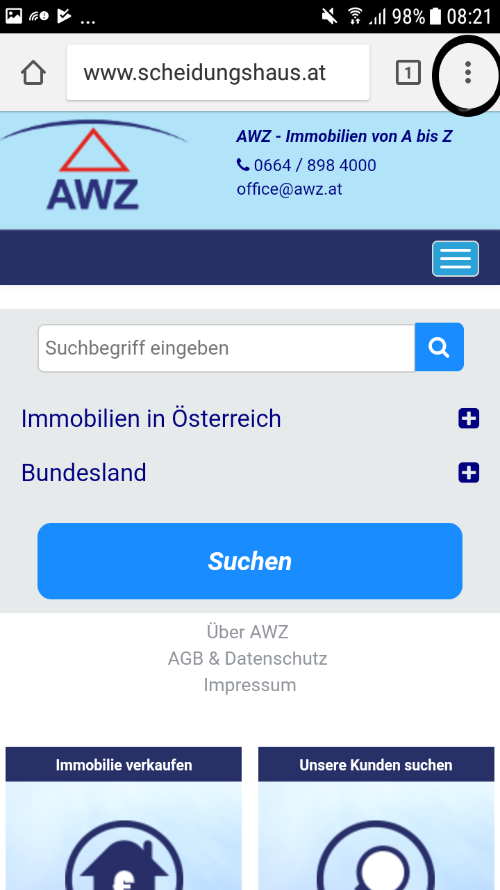 So legen Sie das AWZ Lesezeichen auf ihrem Startbildschirm an